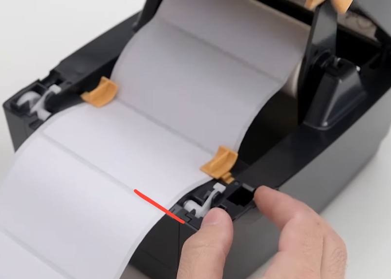 * Esteja com a impressora ligada e a etiqueta corretamente posicionada, a posição final da etiqueta precisa estar alinhada com a saída da impressora para que sua impressão não fique desalinhada, verifique a posição correta na imagem a seguir:&#x20;